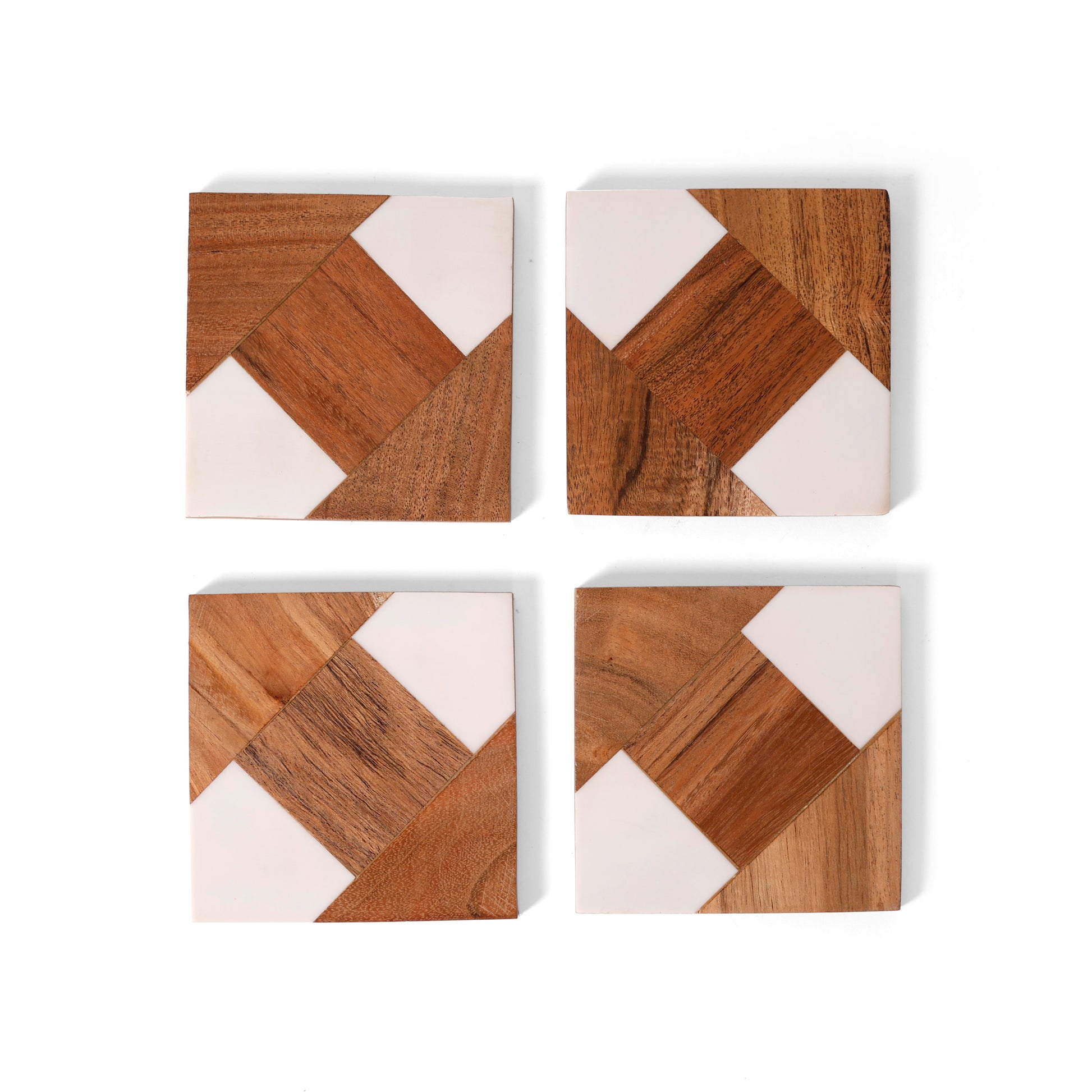 Bring understated sophistication to your table with the GeoFusion Wooden & Resin Coaster by Navakrti Decor. Designed in a precise square format, this coaster features an artistic geometric composition where warm natural wood tones intersect with clean white resin inlays.