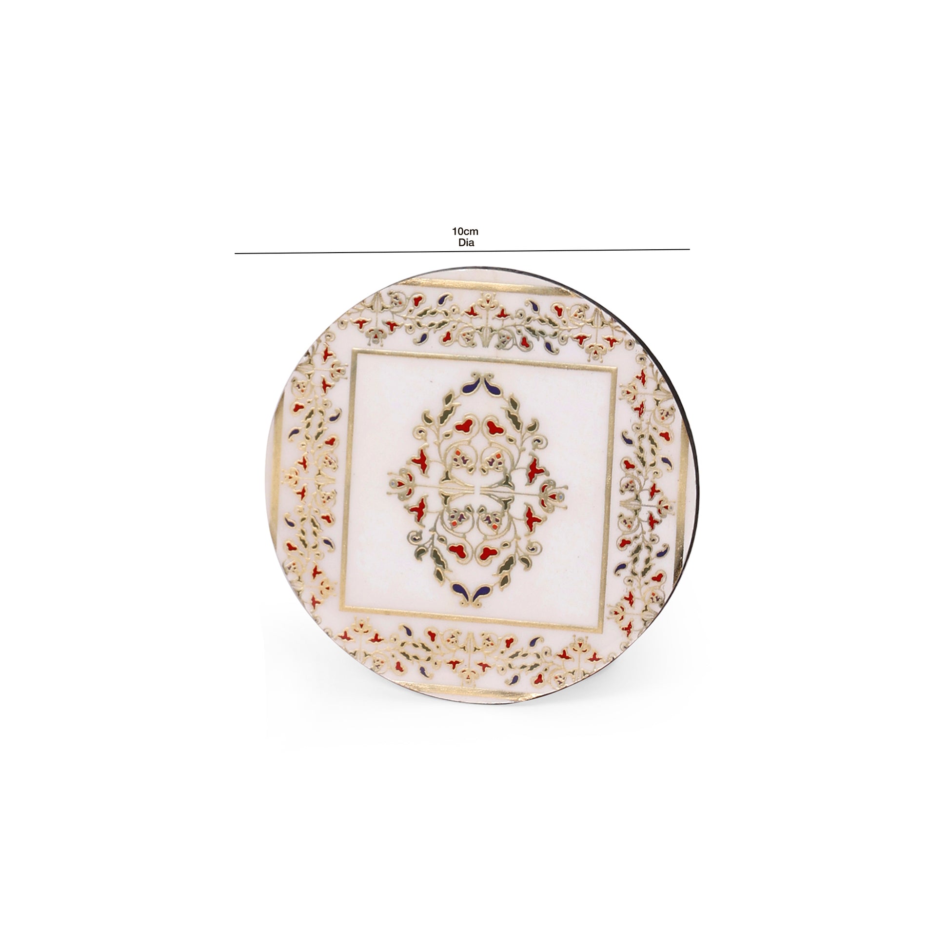 Each coaster measures 10 × 10 cm, suitable for cups, mugs, glasses, and small bowls.