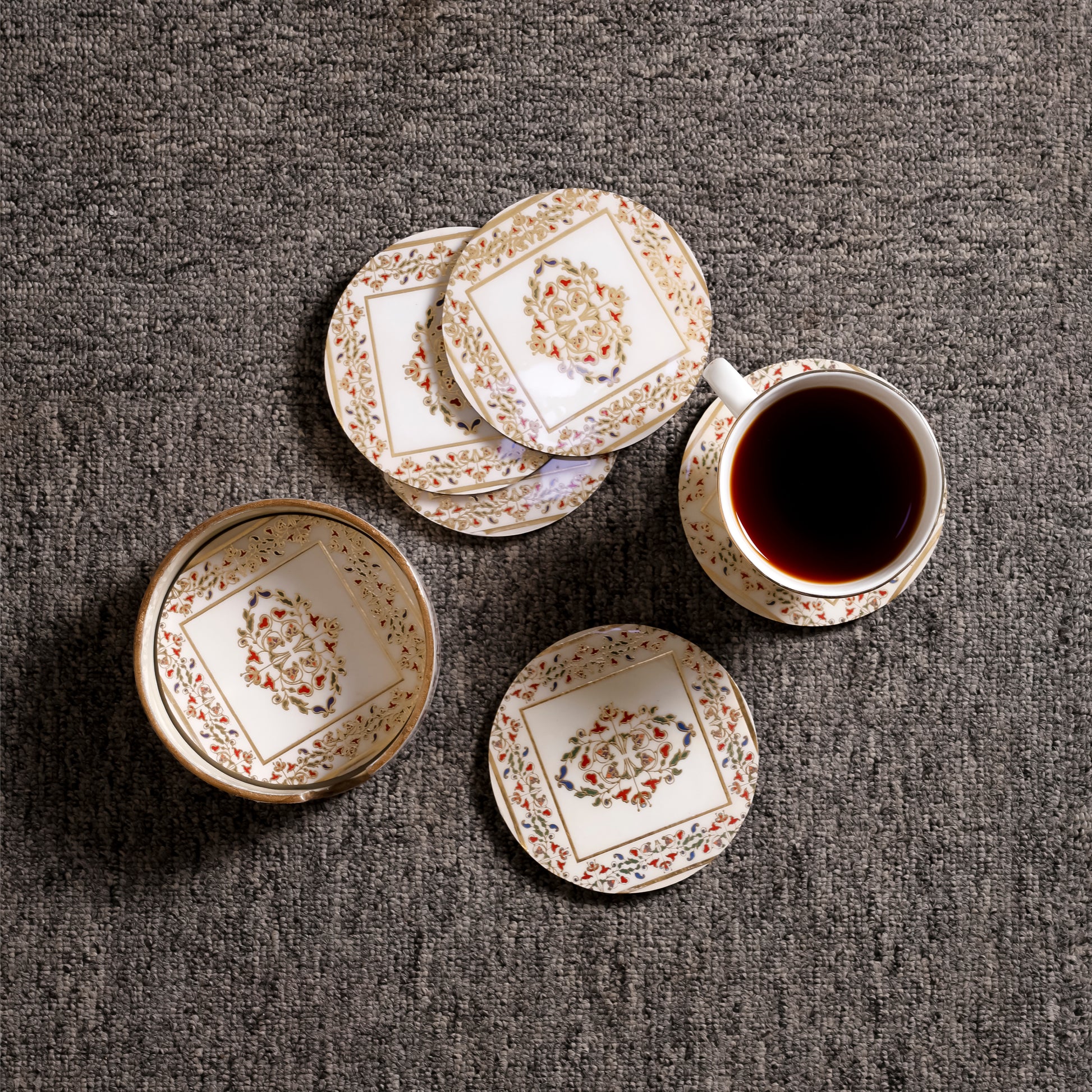 - Set of 6 premium decorative coasters