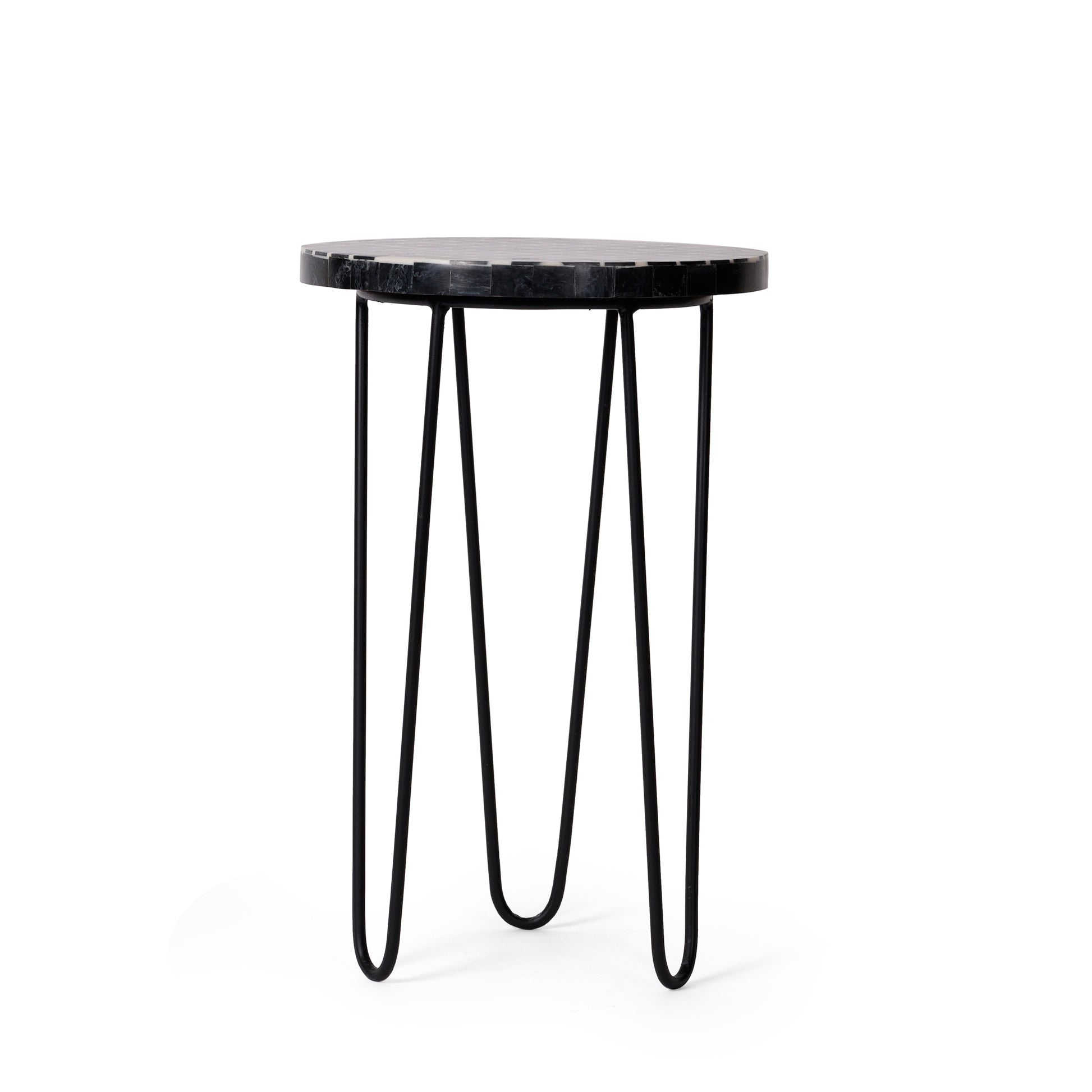 Supported by sleek yet sturdy black metal hairpin legs, this table offers excellent stability while maintaining a minimal, modern aesthetic. With a compact 25 cm diameter and a 39 cm height, it fits perfectly as a plant stand, sofa side table, bedside table, or decorative accent table.