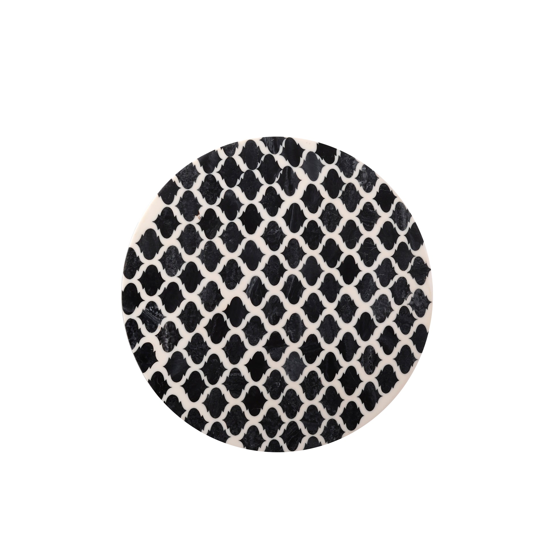 The round tabletop is handcrafted using natural wood and premium resin, featuring a striking geometric pattern that adds depth, texture, and visual appeal. The smooth resin finish not only enhances durability but also makes the surface easy to clean and resistant to everyday wear.