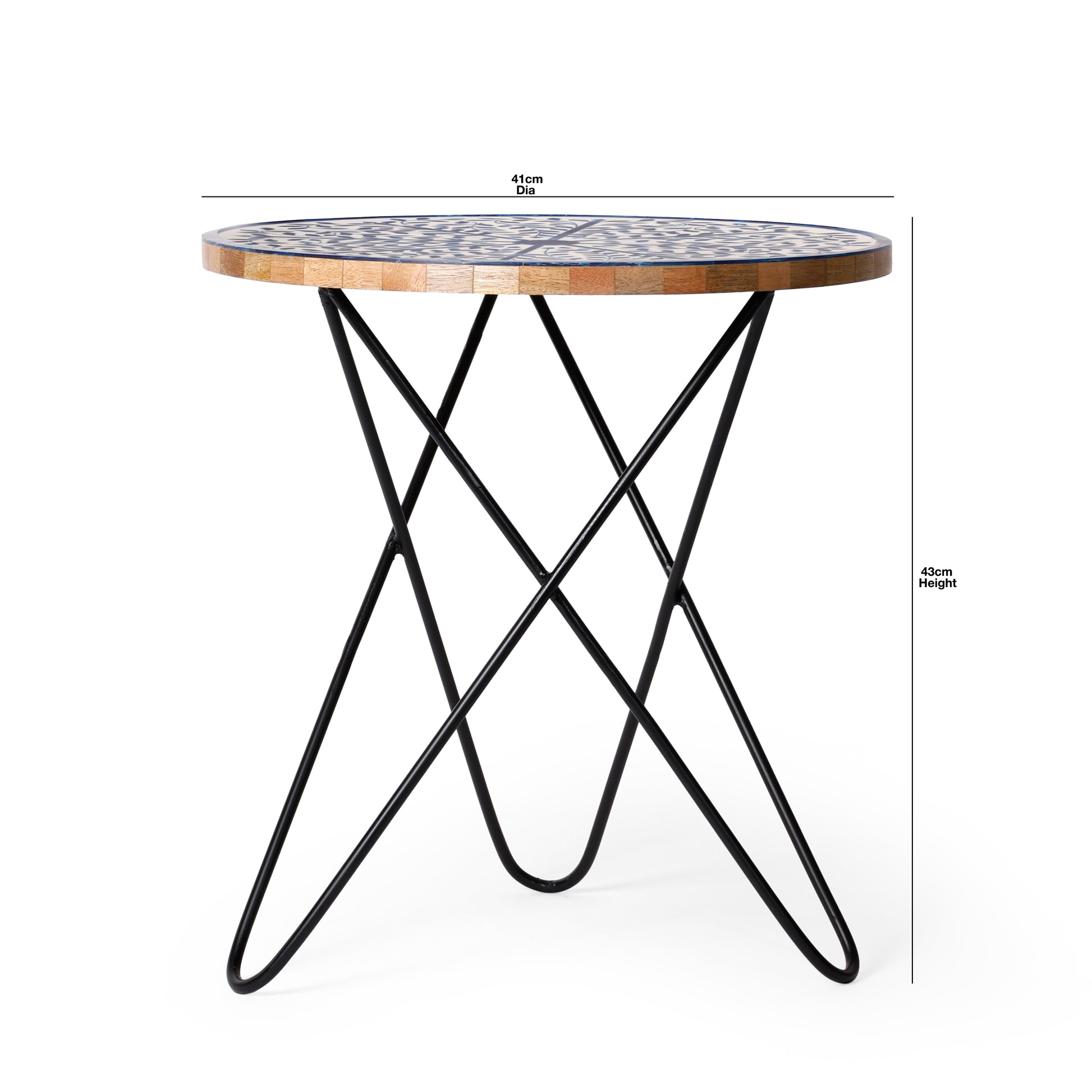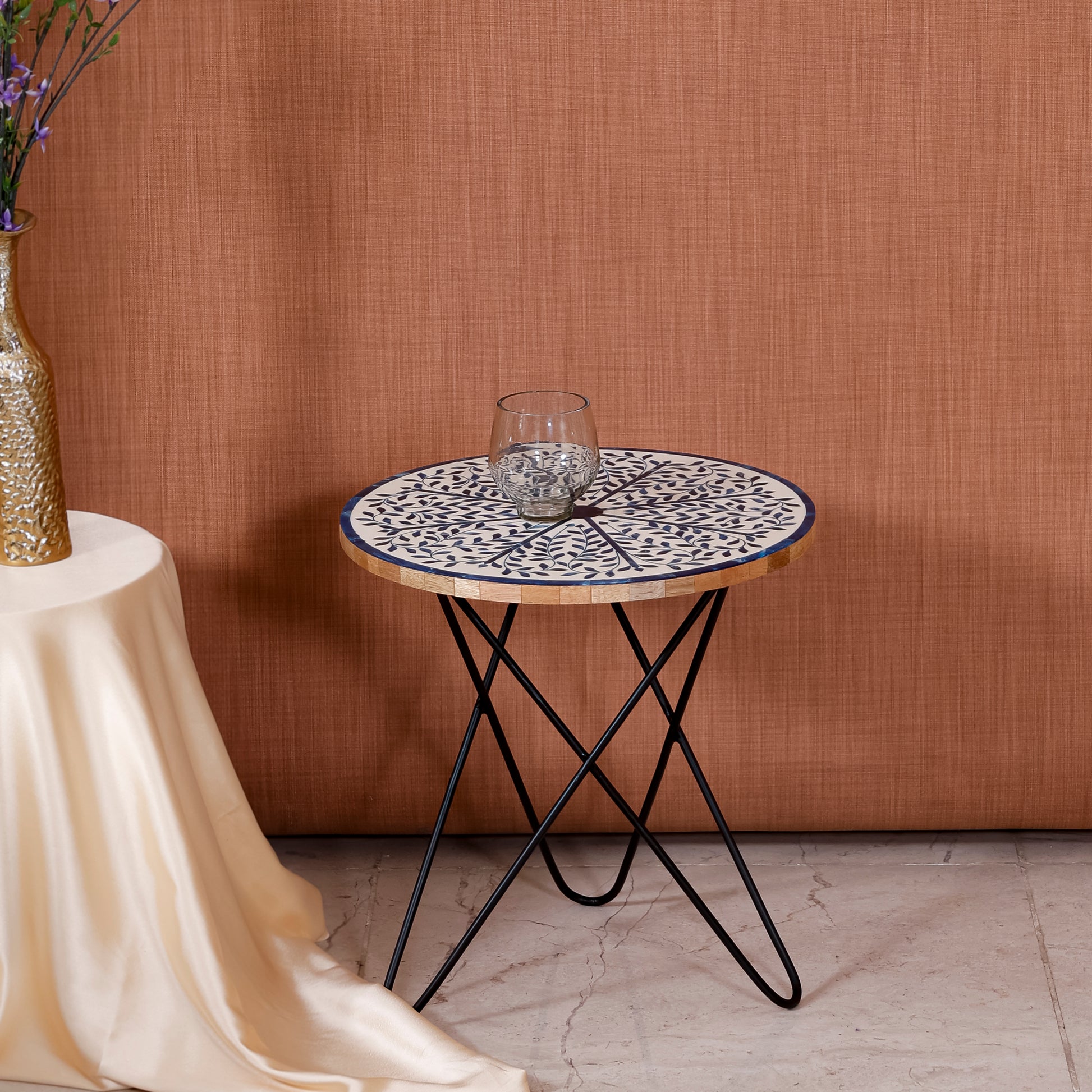 Bring artistic charm and functional elegance to your space with the Navakrti Decor Wooden & Resin Top Side Table. Designed with a beautifully handcrafted blue resin inlay on a solid wooden base, this table showcases intricate floral patterns that add a timeless appeal to modern and traditional interiors alike.