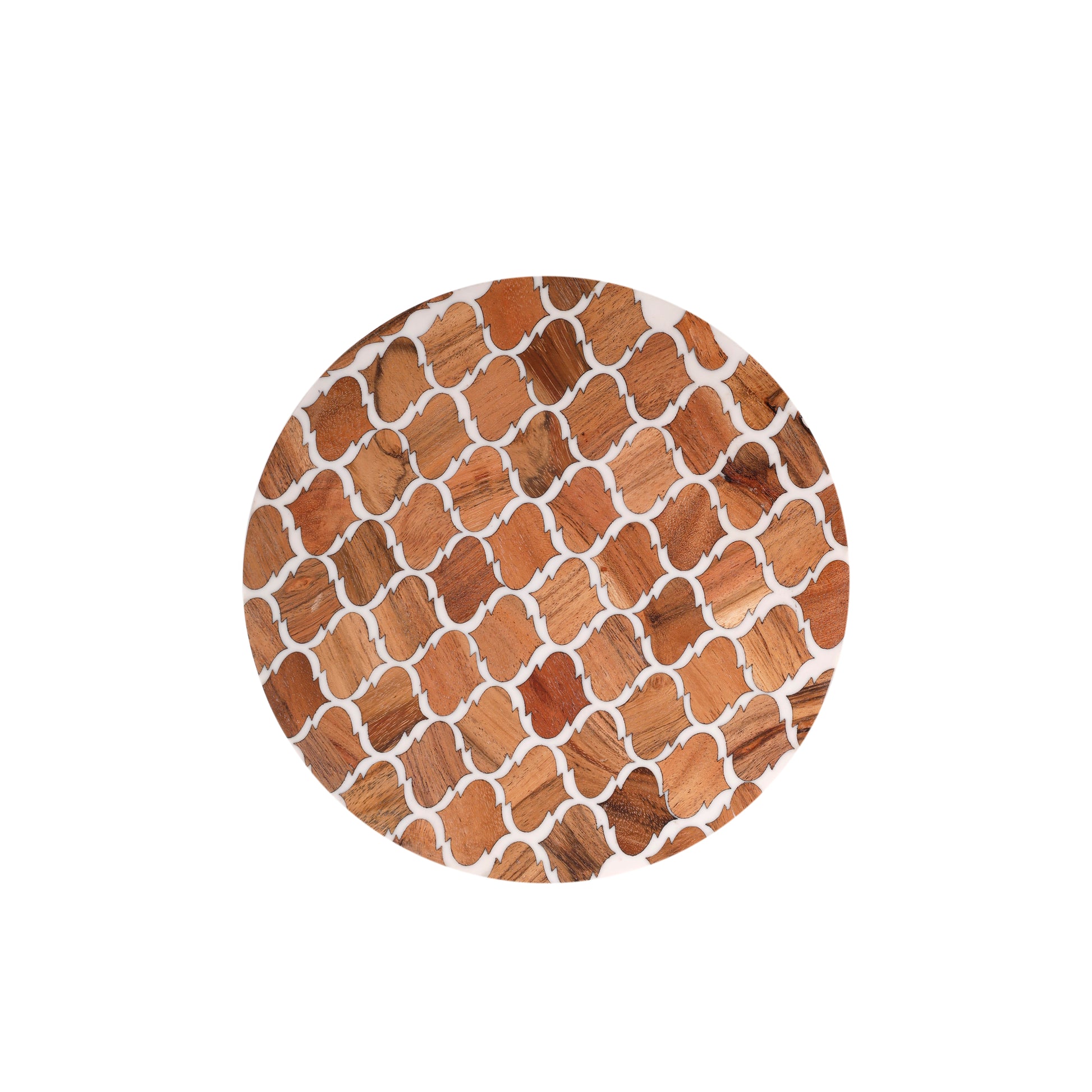 The Navakrti Decor Wooden Resin Top Mini Side Table is a beautifully handcrafted accent piece designed for compact spaces. Featuring a refined geometric resin inlay pattern on a solid wooden top, this table adds warmth and character to any room.