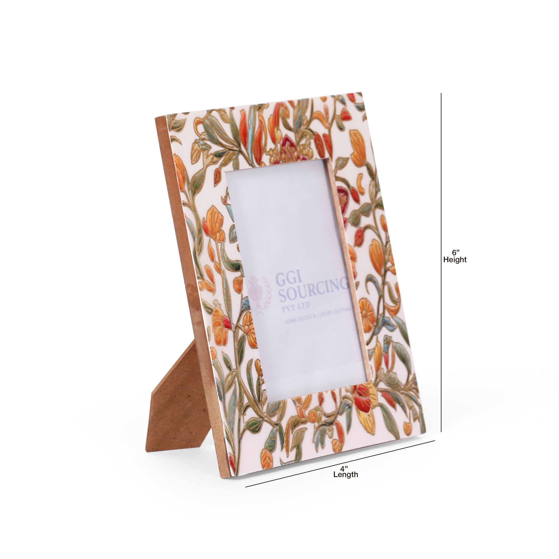 Navakrti Decor Crimson Bloom Resin-Coated MDF Photo Frame – 4 × 6 Inch | Red Floral Decorative Picture Frame
